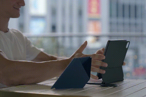 Podstawka składa się jak papier, gdy nie jest używana, przekształcając się w niewidocznego codziennego towarzysza. Z łatwością zmieści się na półce z książkami lub w codziennej torbie