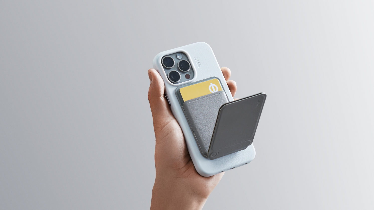 MOFT Snap Phone Tripod Wallet MOVAS™ to stylowy i wielofunkcyjny dodatek do iPhone'a z obsługą MagSafe. Łączy w sobie funkcję stojaka, statywu i portfela, zapewniając wygodę użytkowania i przechowywania kart. Idealny do rozmów wideo, przechwytywania treści i codziennego użytku.